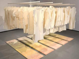 I utställningen Paritet visas två verk; Odd Toile (2019) och Kollektion L (2008-2009) som båda innefattar aspekter av genus och queer i relation till kläder. Genomgående i Maja Gunns arbete är ett undersökande av kläders performativa och politiska funktioner, ofta i relation till kulturella, sociala och heteronormativa strukturer.